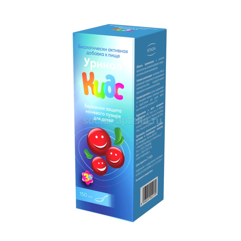 В качестве биологически активной добавки к пище – источника проантоцианидинов. Уринал Кидс (далее – Уринал Кидс) содержит натуральный активный компонент, безопасный для применения у детей и является продуманным по наполнению продуктом европейского качества. Уринал Кидс обеспечивает защиту почек, мочевого пузыря и мочевыводящих путей от вредоносных бактерий и негативных факторов окружающей среды, которые особенно уязвимо влияют на детские органы мочевыделительной системы. Уринал Кидс может служить дополнительным источником проантоцианидинов, может оказывать защитное действие на мочевой пузырь и мочевыводящие пути, улучшать функциональное состояние и поддерживать местный иммунитет почек и мочевыводящих путей у детей. Уринал Кидс подходит как для комбинированного (например, совместно с антибиотиками), так и для самостоятельного применения. Эффективность не снижается при длительном приеме, так как у бактерий не формируется устойчивость (резистентность) к действию растительных компонентов. Уринал Кидс имеет высокий профиль безопасности, в связи с чем разрешен к применению у детей. Форма сиропа является одной из предпочтительных для применения в детском возрасте в связи с быстротой всасывания, сироп имеет приятный натуральный вкус. Уринал Кидс не содержит ароматизаторов, красителей, консервантов.