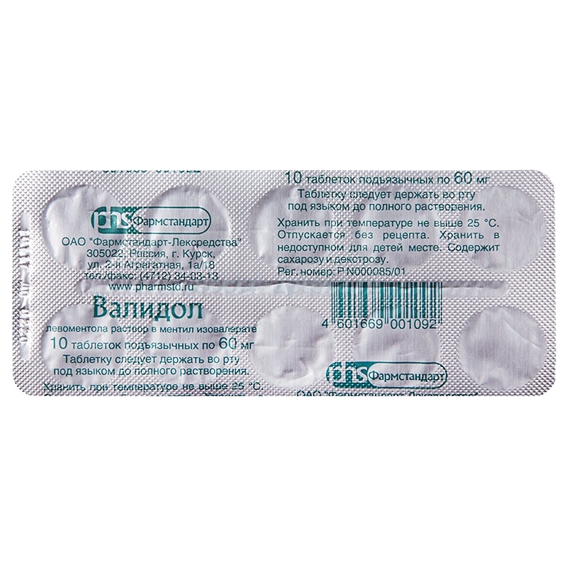Действующее вещество: раствор ментола в ментиловом эфире изовалериановой кислоты 50 мг.