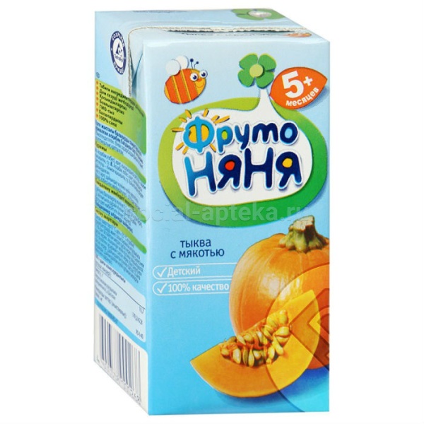 Нектар с мякотью ФрутоНяня Тыква богат каротином, есть в нем и соли калия, железа, витамины группы В. Благодаря содержанию солей калия, тыквенный сок и нектар полезен при заболеваниях сердечно-сосудистой системы, почек. Рекомендуется детям с 5 месяцев, начиная с минимальной дозы после одного из утренних кормлений, постепенно увеличивая в течение 5-7 дней до 20-30 мл.