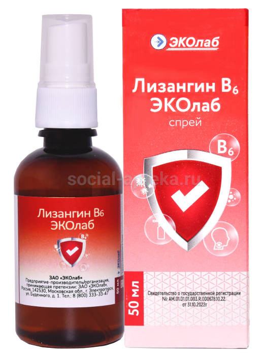 Лизангин В6 спрей 50мл (ЭкоЛаборатория) наличие в аптеках в Москве