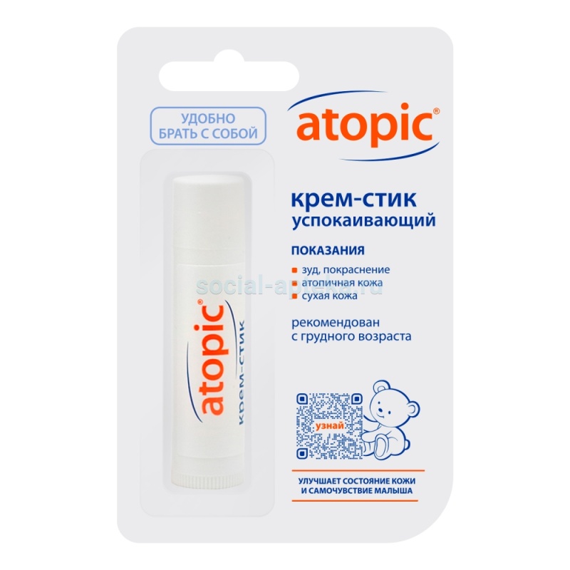 atopic® Крем-стик успокаивающий рекомендован для ухода за кожей у детей с атопическим дерматитом в период обострения (за исключением мокнущих участков кожи) , а также для применения в составе комплексной терапии обострения атопического дерматита, начиная с грудного возраста.