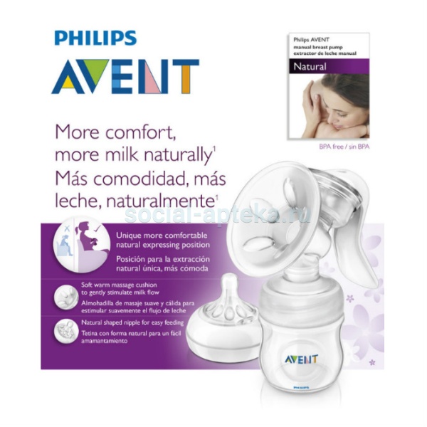 новая конструкция позволяет сцеживаться не наклоняясь; лепестковый массажер для стимуляции выделения молока; физиологичная соска для кормления в комплекте