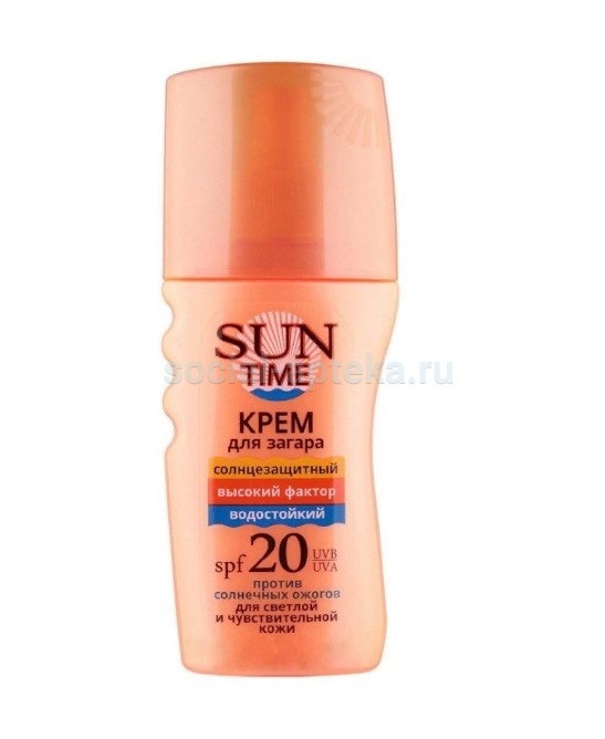 Крем для загара для чувствительной кожи SPF 20 из серии Sun Time Обеспечивает защиту кожи от УФ-лучей. Продлевает время безопасного пребывания на солнце, препятствует развитию негативных последствий солнечного воздействия. Рекомендован в первые дни загара и при высокой солнечной активности, способствует более безопасному приобретению красивого равномерного загара. Увлажняет и смягчает кожу. Подчеркивает красоту вашего тела. Разработан специально для чувствительной кожи. Водостойкий.