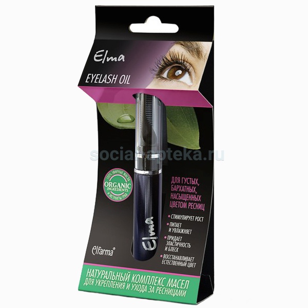 Ресницы и брови – не только украшение наших глаз, но и их защита. Чтобы они оставались густыми, гладкими и гибкими требуется ежедневный уход за ними, особенно для тех, кто регулярно пользуется тушью. Косметическое масло для укрепления бровей и ресниц Elma: укрепляет, питает, увлажняет, восстанавливает естественный цвет, способствует росту, сохраняет природную густоту и форму