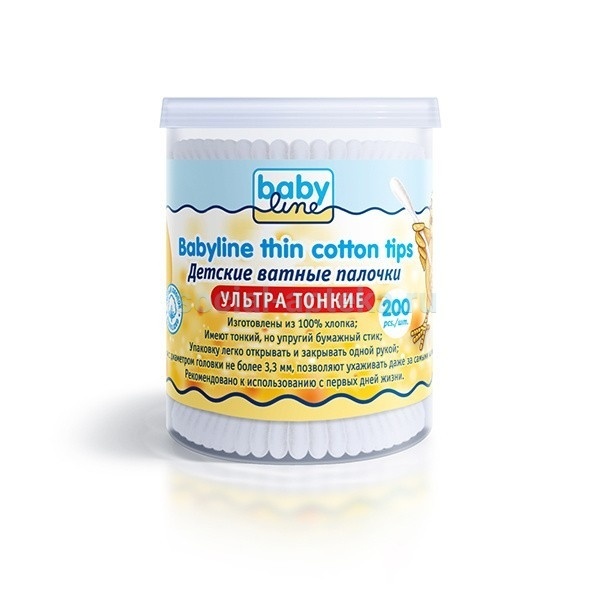 Имеют тонкий, но упругий бумажный стик. Упаковку легко открывать и закрывать одной рукой. Тонкие палочки с диаметром головки не более 3,3мм, позволяют ухаживать даже за самыми маленькими. Рекомендовано к использованию с первых дней жизни