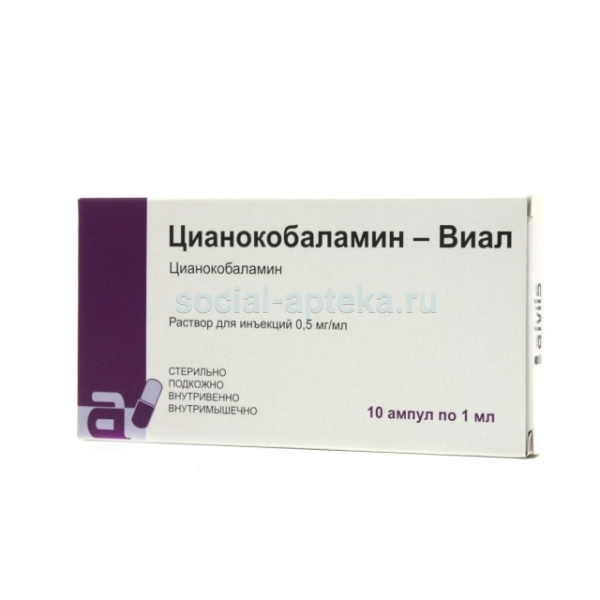 1 мл раствора для инъекций содержит: действующее вещество: цианокобаламина - 500 мкг, вспомогательные вещества: вода для инъекций, натрия хлорид.