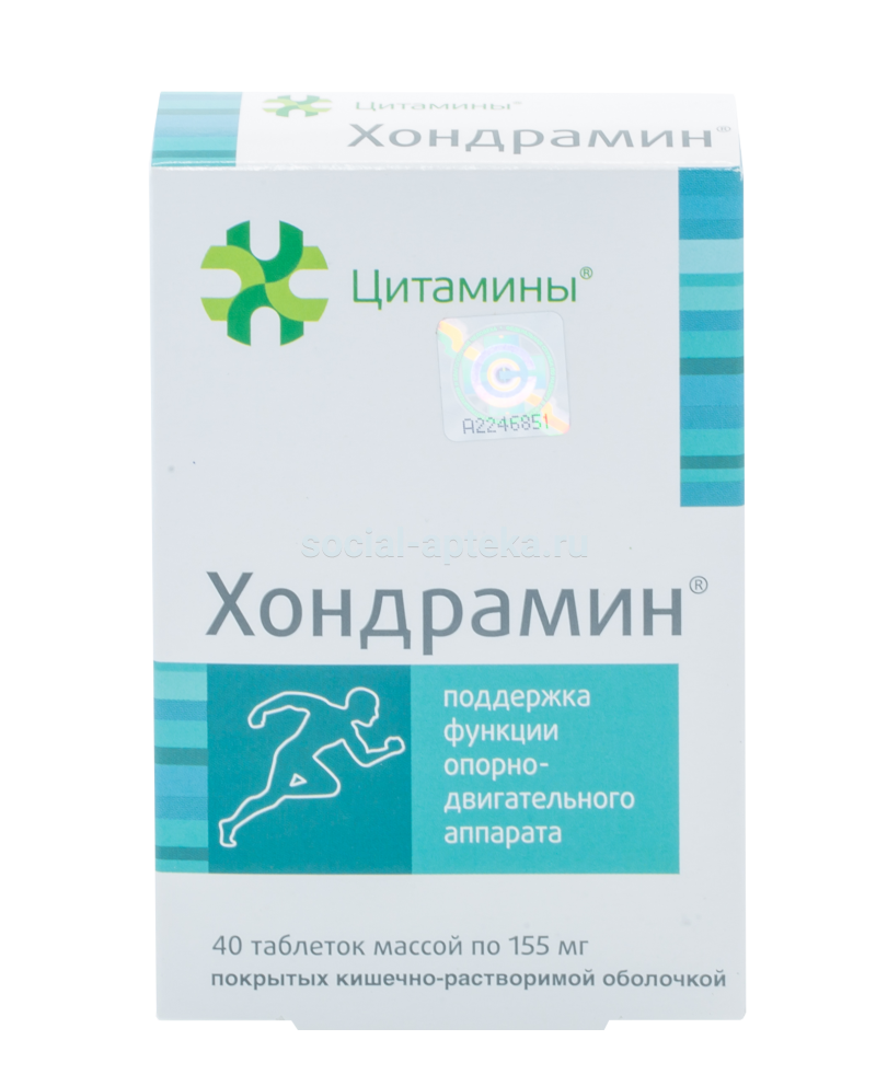 Компоненты для Хондрамина, получаемые из хрящей крупного рогатого скота, представляют собой комплекс белков и нуклеопротеидов, обладающих избирательным действием на клетки хрящевой ткани, что способствует нормализации обменных процессов в хондроцитах и снижает возможность возникновения различных поражений суставов. Клинические испытания Хондрамина проводились у 120 пациентов с остеоартрозом коленных суставов, остеохондрозом позвоночника и системным остеопорозом. Оценка эффективности применения Хондрамина проводилась на основании динамики субъективных жалоб и объективных показателей лабораторных и инструментальных исследований, а также контроля функционального состояния опорно-двигательного аппарата. В ходе проведения клинических испытаний установлено, что курсовой прием Хондрамина в составе комплексной терапии способствовал снижению болевого синдрома и тугоподвижности суставов у пациентов. Наиболее характерным действием Хондрамина являлось снижение болевого синдрома и увеличение объема движения в пораженных суставах. На фоне приема Хондрамина у всех пациентов отмечалось существенное сглаживание патологической симптоматики, обычно характеризующейся значительной устойчивостью к терапии. Степень клинического эффекта зависела от стадии протекания заболевания: у лиц старшего и пожилого возраста динамика была менее выражена, однако такие субъективные ощущения оценивались как очень благоприятные для старшей возрастной категории пациентов. Хондрамин® рекомендуется применять для ускорения процессов восстановления хрящевой ткани при воспалительных и обменно-дистрофических поражениях суставов конечностей и позвоночника, неполноценном питании, воздействии на организм различных экстремальных факторов, а также при тяжелых физических нагрузках и в спорте высших достижений. Хондрамин® рекомендуется лицам старшего и пожилого возраста для поддержания нормального функционирования опорно-двигательного аппарата. Хондрамин® является натуральным продуктом, не содержит консервантов, красителей и ароматизаторов.