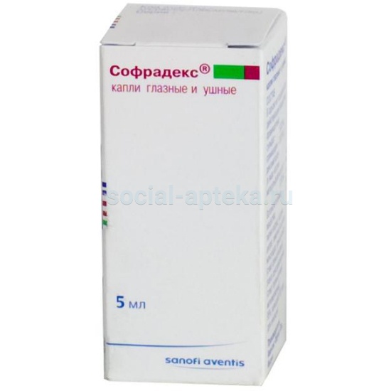 - Форма выпуска: Софрадекс. Капли глазные и ушные