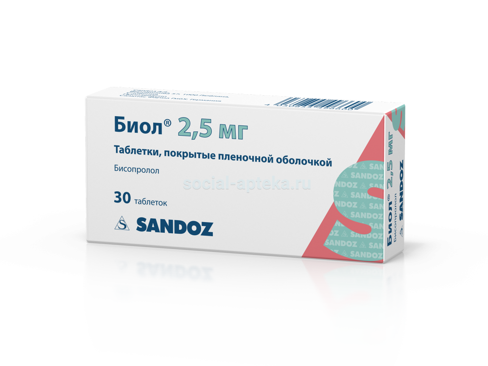 Не следует резко прерывать лечение препаратом Биол® из-за опасности развития тяжелых аритмий и инфаркта миокарда. Отмену проводят постепенно, снижая дозу на 25% каждые 3–4 дня.Контроль состояния пациентов, принимающих препарат Биол®, должен включать измерение ЧСС и АД (в начале лечения — ежедневно, затем — 1 раз в 3–4 мес), проведение ЭКГ, определение концентрации глюкозы крови у пациентов с сахарным диабетом (1 раз в 4–5 мес).У пациентов пожилого возраста рекомендуется следить за функцией почек (1 раз в 4–5 мес).Следует обучить пациента методике подсчета ЧСС и проинструктировать о необходимости врачебной консультации при ЧСС менее 50 уд./мин.В случае выявления у пациентов пожилого возраста нарастающей брадикардии (ЧСС менее 50 уд./мин), выраженного снижения АД (сАД менее 100 мм рт.ст.), AV блокады, необходимо уменьшить дозу или прекратить лечение. Перед началом лечения рекомендуется проводить исследование функции внешнего дыхания у пациентов с отягощенным бронхолегочным анамнезом.Пациентам, пользующимся контактными линзами, следует учитывать, что на фоне лечения препаратом возможно уменьшение продукции слезной жидкости.При применении препарата Биол® у пациентов с феохромоцитомой имеется риск развития парадоксальной артериальной гипертензии (если предварительно не достигнута эффективная блокада альфа-адренорецепторов).При гипертиреозе бисопролол может маскировать определенные клинические признаки гипертиреоза (например тахикардию). Резкая отмена препарата у пациентов с гипертиреозом противопоказана, поскольку способна усилить симптоматику. При сахарном диабете может маскировать тахикардию, вызванную гипогликемией. В отличие от неселективных бета-адреноблокаторов, практически не усиливает вызванную инсулином гипогликемию и не задерживает восстановление концентрации глюкозы в крови до нормального значения. При одновременном применении клонидина его прием может быть прекращен только через несколько дней после отмены препарата Биол®.Возможно усиление выраженности реакции повышенной чувствительности и отсутствие эффекта от обычных доз эпинефрина на фоне отягощенного аллергологического анамнеза.В случае необходимости проведения планового хирургического лечения препарат следует отменить за 48 ч до проведения общей анестезии. Если пациент принял препарат перед хирургическим вмешательством, ему следует подобрать ЛС для общей анестезии с минимально отрицательным инотропным действием.Реципрокную активацию блуждающего нерва можно устранить в/в введением атропина (1–2 мг). ЛС, которые истощают депо катехоламинов (в т.ч. резерпин), могут усилить действие бета-адреноблокаторов, поэтому пациенты, принимающие такие сочетания ЛС, должны находиться под постоянным наблюдением врача на предмет выявления выраженного снижения АД или брадикардии.Пациентам с бронхоспастическими заболеваниями можно с осторожностью назначать кардиоселективные бета-адреноблокаторы в случае непереносимости и/или неэффективности других гипотензивных средств. На фоне приема бета-адреноблокаторов у пациентов с сопутствующей бронхиальной астмой может усиливаться сопротивление дыхательных путей. При превышении дозы препарата Биол® у таких пациентов возникает опасность развития бронхоспазма.В случае выявления у пациентов нарастающе