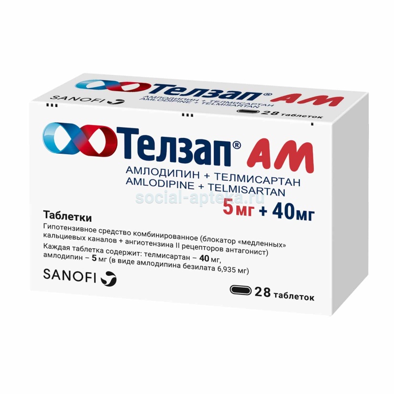 Препарат Телзап® AM имеет в своем составе два гипотензивных вещества с взаимодополняющими механизмами действия, которые обеспечивают контроль показателей артериального давления (АД) у пациентов с эссенциальной артериальной гипертензией; амлодипин принадлежит к фармакологической группе блокаторов "медленных" кальциевых каналов (БМКК), а телмисартан - к группе антагонистов рецепторов ангиотензина II (АРА II).