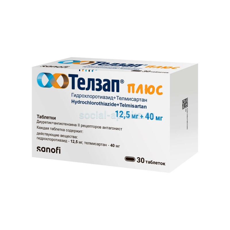 Препарат Телзап® Плюс - комбинированный препарат для снижения повышенного артериального давления, который содержит два действующих вещества: телмисартан (антагонист рецепторов ангиотензина II) и гидрохлоротиазид (диуретик, мочегонное средство).