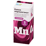 Антисептическое средство. При соприкосновении с органическими веществами выделяет атомарный кислород. Образующийся при восстановлении калия перманганата марганца оксид образует с белками комплексные соединения - альбуминаты (за счет этого калия перманганат в малых концентрациях оказывает вяжущее, а в концентрированных растворах - раздражающее, прижигающее и дубящее действие). Обладает также дезодорирующим эффектом. Эффективен при лечении ожогов и язв. Способность калия перманганата обезвреживать некоторые яды лежит в основе использования его растворов для промывания желудка при отравлениях.
